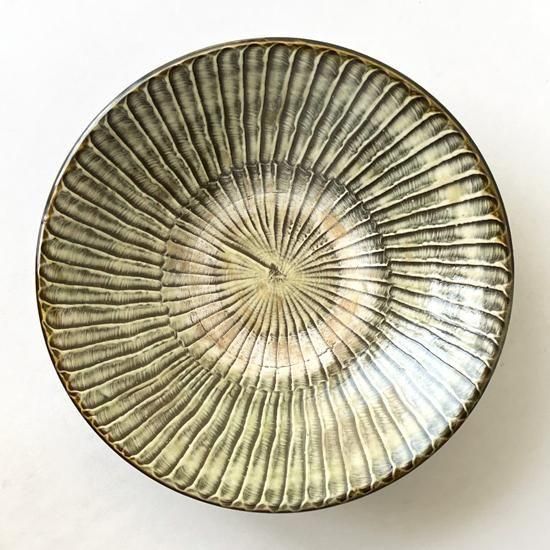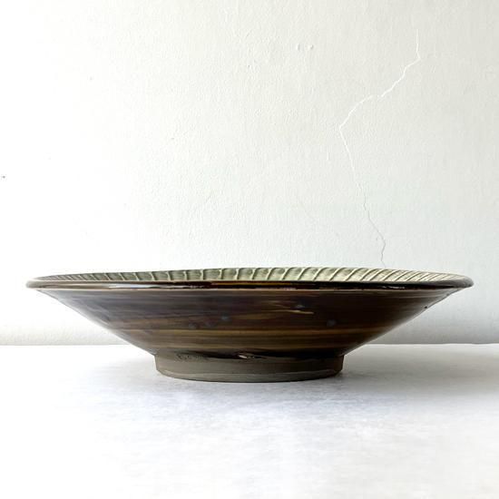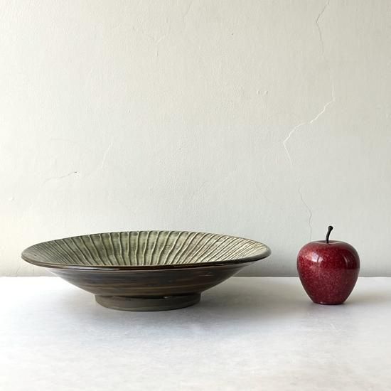 Vintage Japanese Folk Art: 緑釉刷毛目尺皿 / 小鹿田焼(柳瀬朝夫)