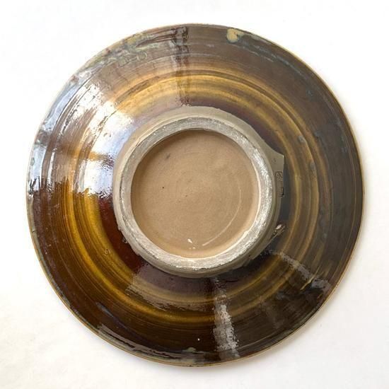 大分県日田市の山間で300年以上の歴史を持つ陶工の集落 皿山 の民窯 小鹿田焼 の古い尺皿です。形はやや深めの珍しい品です。