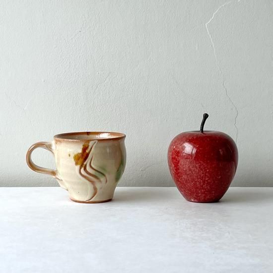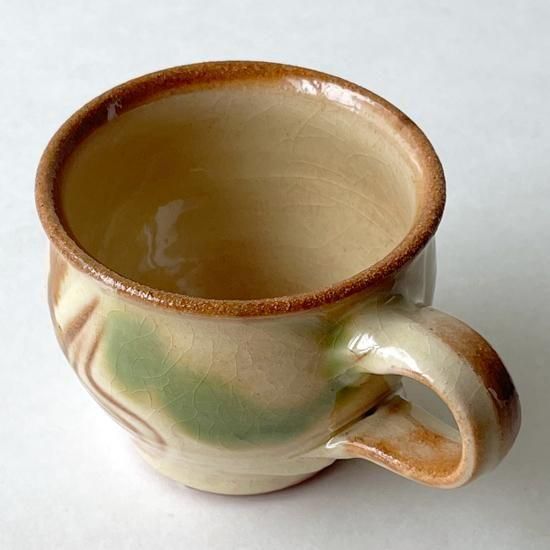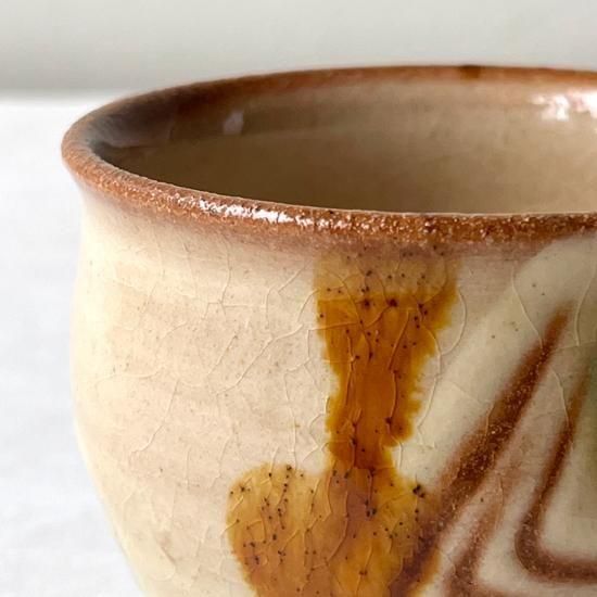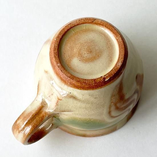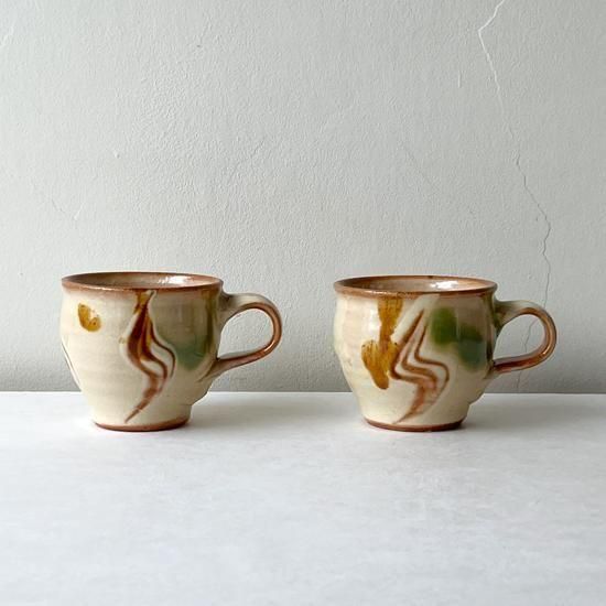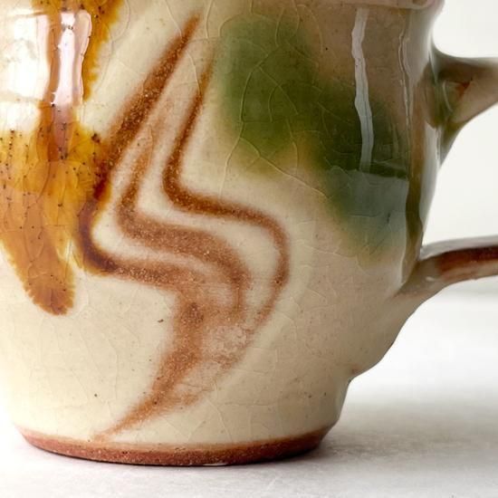 島根県の民窯 湯町窯 で作られた古いコーヒーカップです。 湯町窯は1950年代に民藝運動に参加し、柳宗理やバーナード・リーチから直接手ほどきを受け、 スリップウェアの洋食器が作られるようになりました。