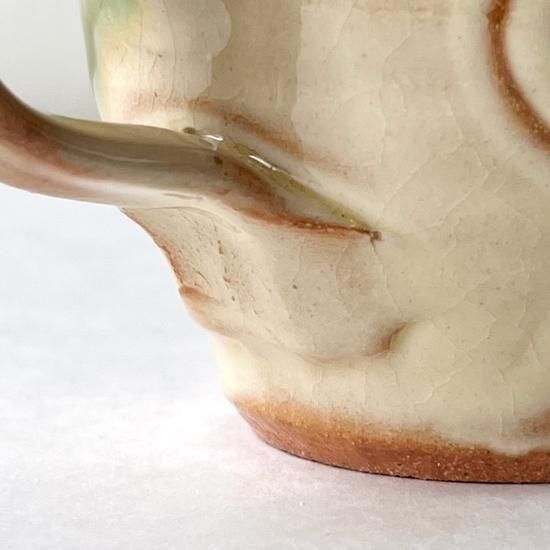 抑揚のついた手に収まりの良いフォルム、クリームのような色合いの釉薬などとても温かみのある仕上がりの品です。