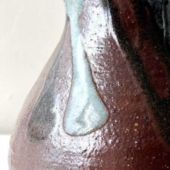 どっしりとした大ぶりなサイズに勢いよく掛けられた釉薬が力強さを感じさせる造形の品。