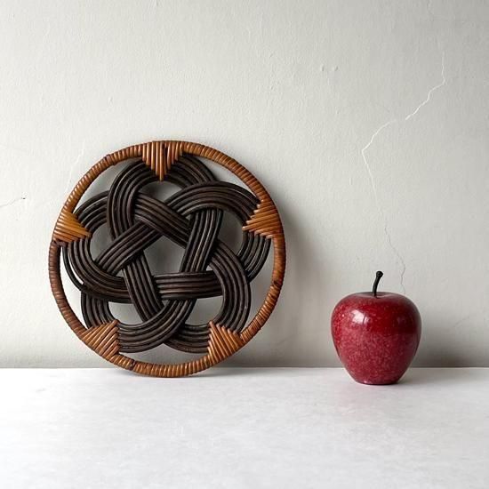 ヴィンテージ ジャパニーズ フォークアート:7寸籐編瓶敷