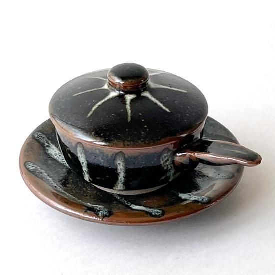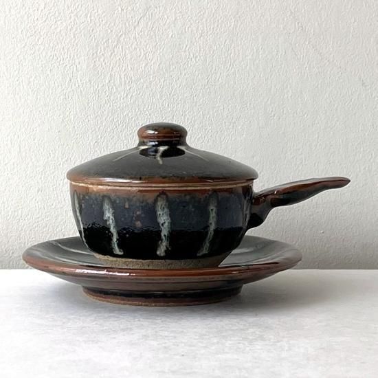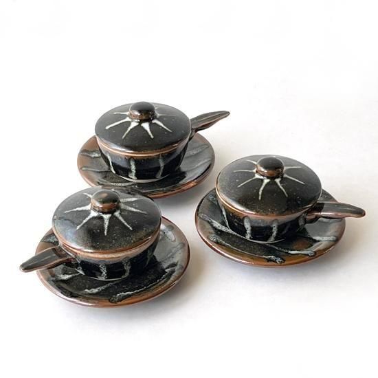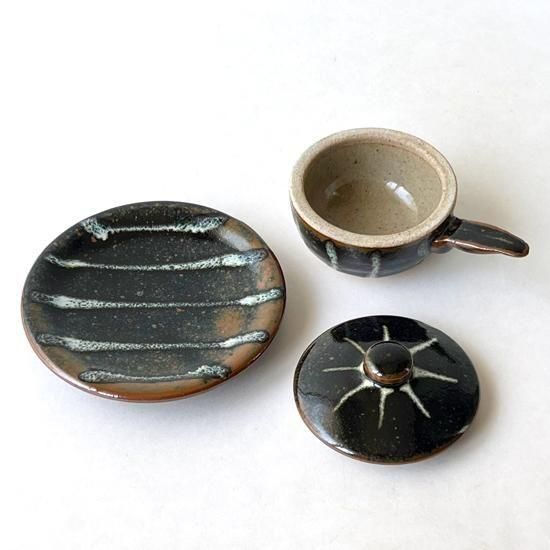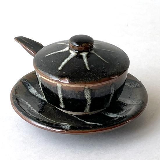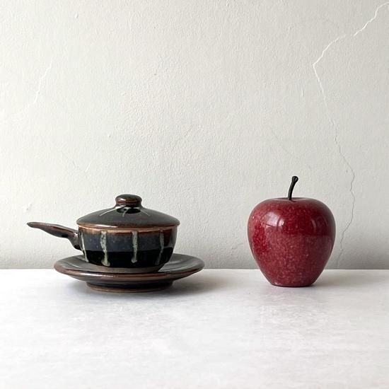民窯のエッグベーカーでは、バーナード・リーチが指導した島根県湯町窯のものが有名ですが、こちらのものは伝統的な益子焼ならではの色合いと全体の意匠が特徴的な品。
