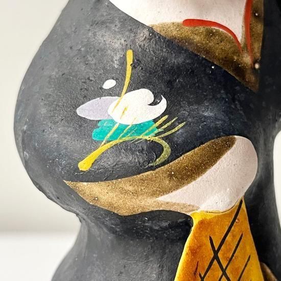 独特の顔つきと動きのある造形が魅力の三春張子。芹沢けい介をも虜にした、古い三春張子独特の色使いや楽しさを持つ作品です。
