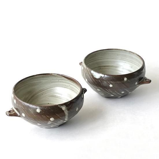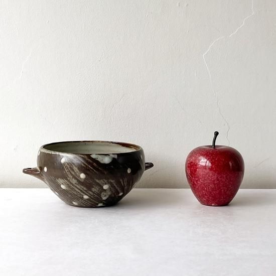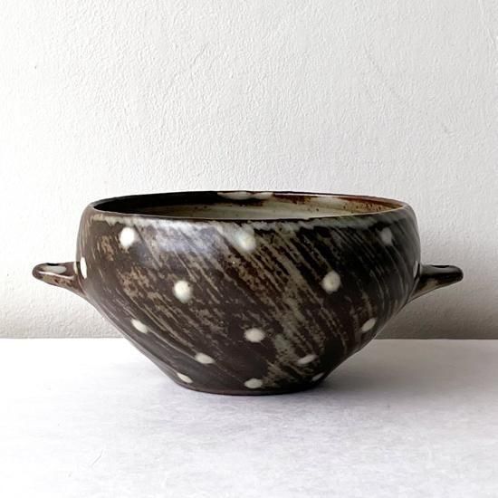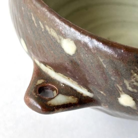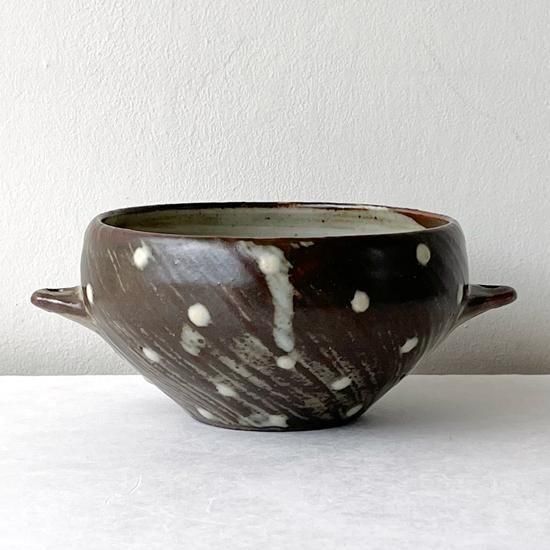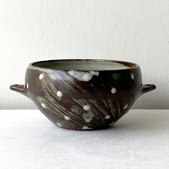 Vintage Japanese Folk Art: 刷毛目点文手付鉢 / 島岡桂