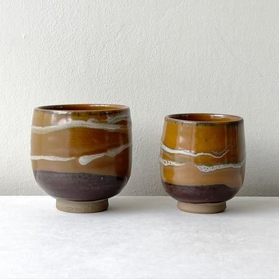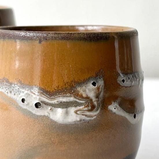 ヴィンテージ ジャパニーズ フォークアート:夫婦湯呑 / 小鹿田焼