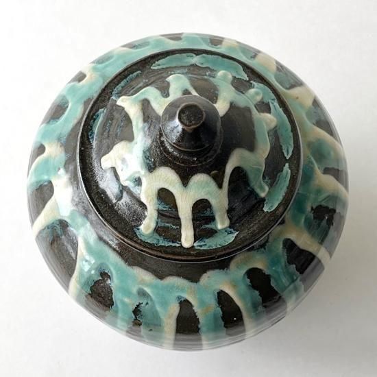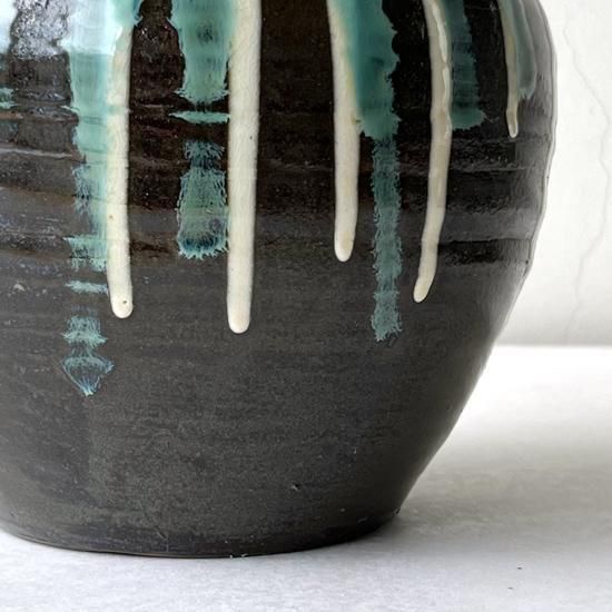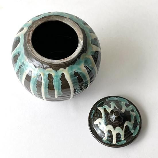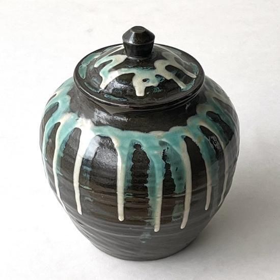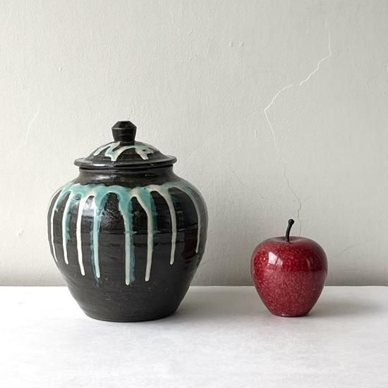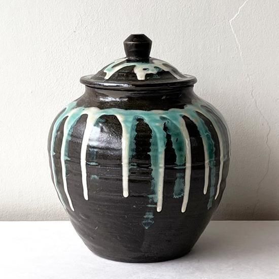 Vintage Japanese Folk Art: 流掛分蓋付壺 / 小鹿田焼(柳瀬朝夫)