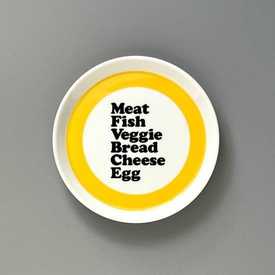 リムの立った少し肉厚で重厚なプレートに、その当時を彷彿とさせるグラフィックと、サイズで異なる3色のカラーリングを施しました。それはまるで輪投げのような感覚で、盛り付ける食材の周りを囲むような視覚を持たせています。
