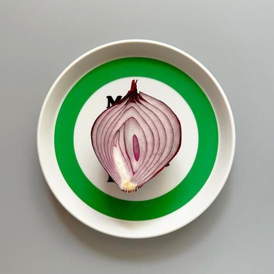 リムの立った少し肉厚で重厚なプレートに、その当時を彷彿とさせるグラフィックと、サイズで異なる3色のカラーリングを施しました。それはまるで輪投げのような感覚で、盛り付ける食材の周りを囲むような視覚を持たせています。