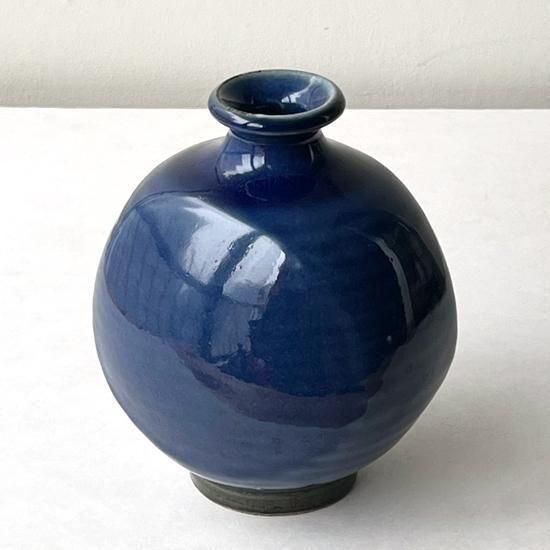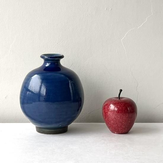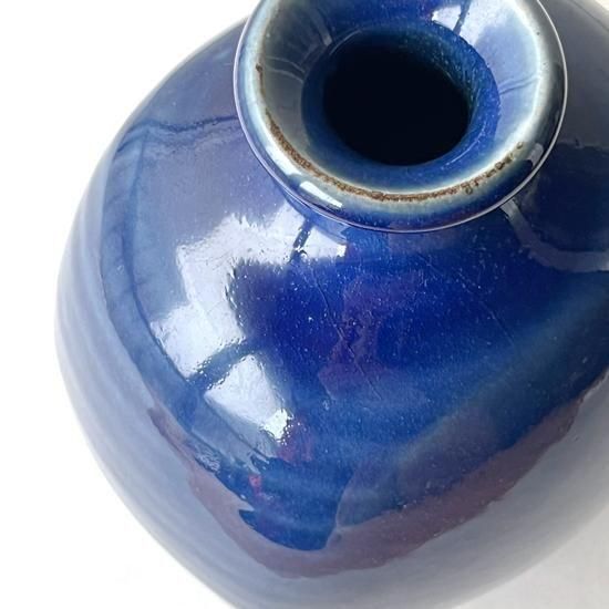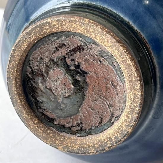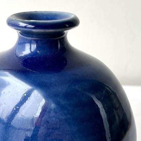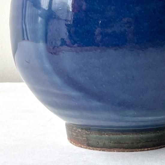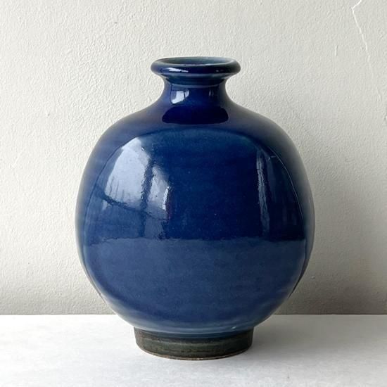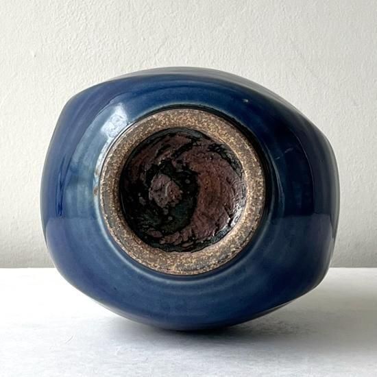 ハリがありエッジの立った扁壺ならではのフォルムに、出西窯で定番的に用いられる深いブルーの色合いがなんとも綺麗です。
