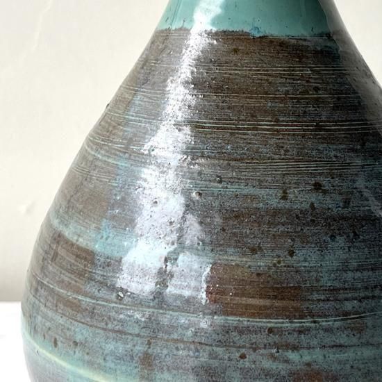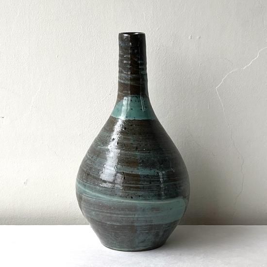 ヴィンテージ ジャパニーズ フォークアート:緑釉刷毛目花入 / 小鹿田焼
