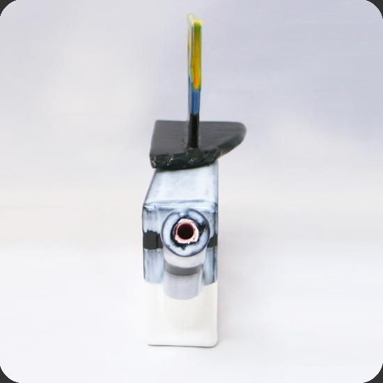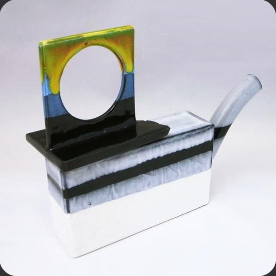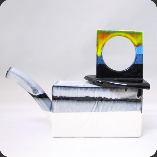 Sake Pot と名付けられたこのポットは、ピーター・シャイヤーの魅力を最大限に感じることのできるアート作品です。「Memphls」での活動や、ポストモダンを彷佛とさせるとても貴重な1点ものの作品です。また、このアイテムにたどり着いた発想も、日系人の妻をもつ彼ならではのものとなっています。