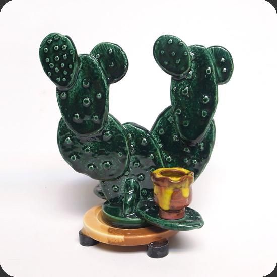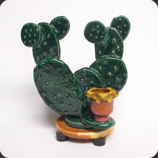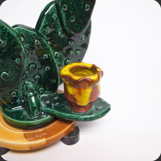 こちらはサボテンのかたちをしたキャンドルホルダーになります。サボテンの独特な表情をしっかり感じさせる存在感のある作品です。